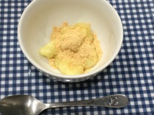 きょうのおやつは、いももちです。