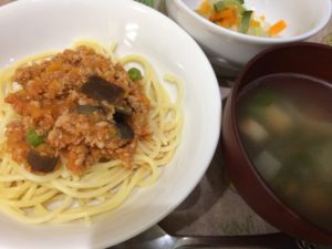 なすのミートソーススパゲッティー