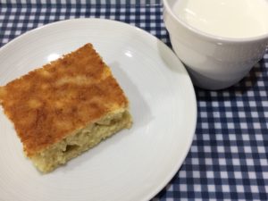 きょうのおやつは、バナナケーキと牛乳です。