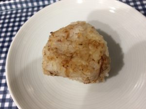 きょうのおやつは、おかか焼きおにぎりです。