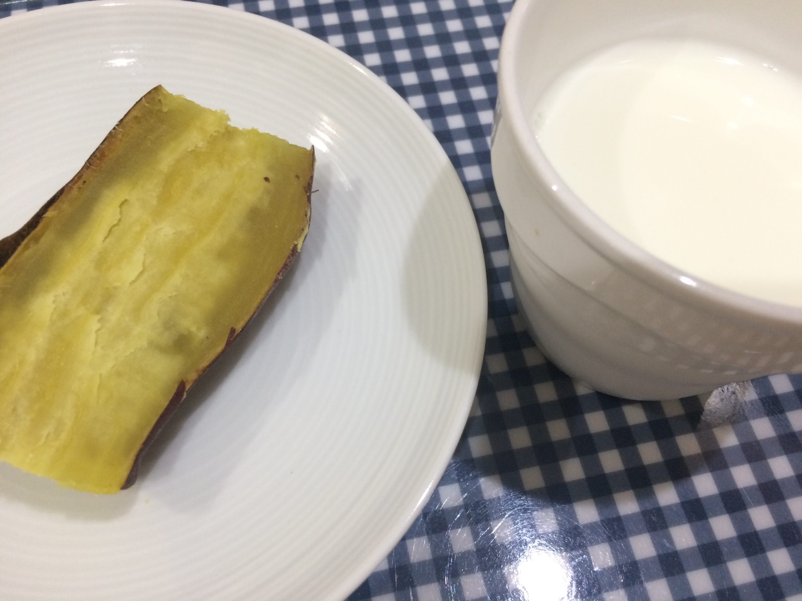 きょうのおやつは、さつまいもバターと牛乳です。...
