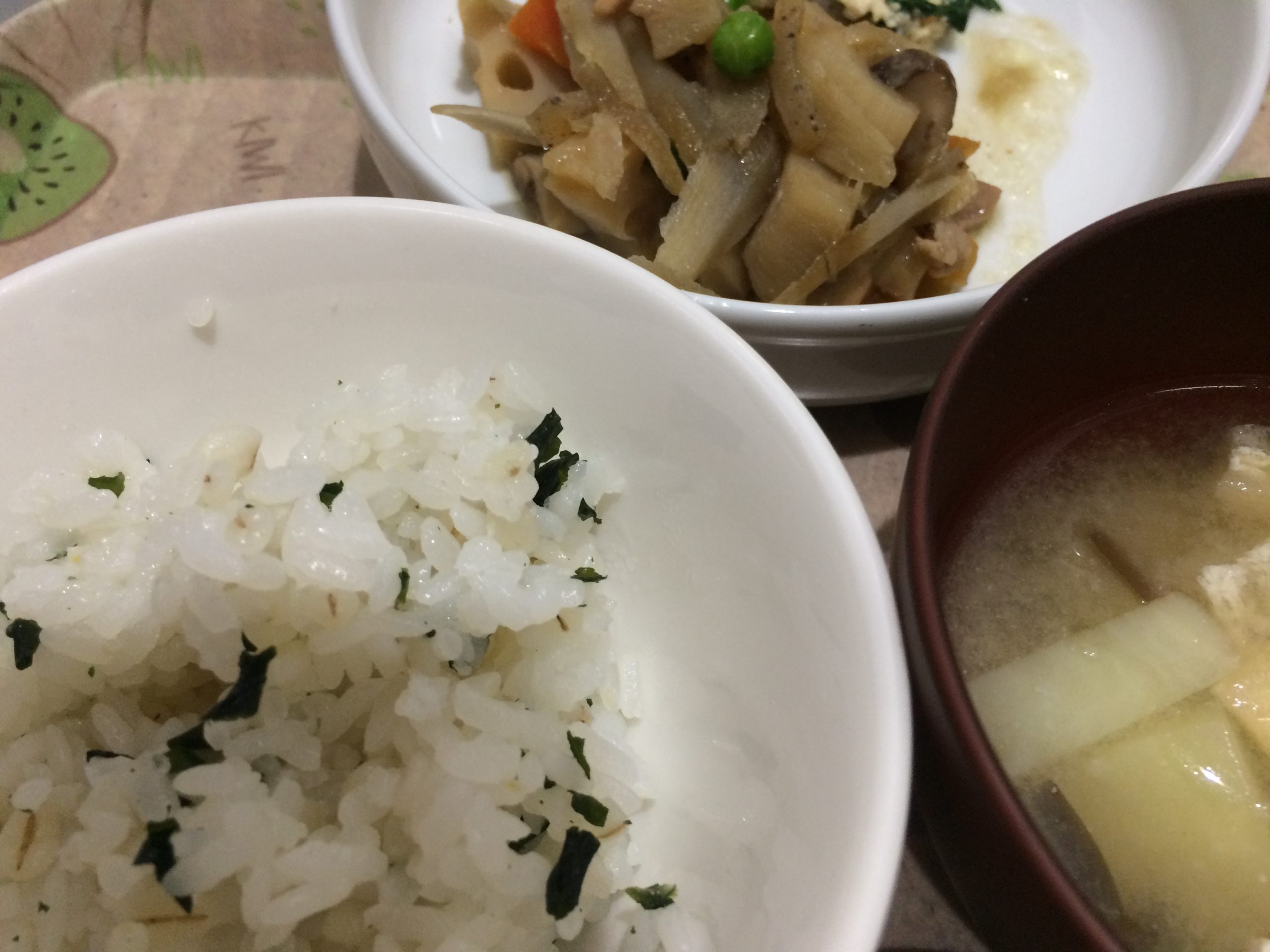 わかめごはん じゃがいもとなすのみそ汁 ちくぜん煮 白和え...