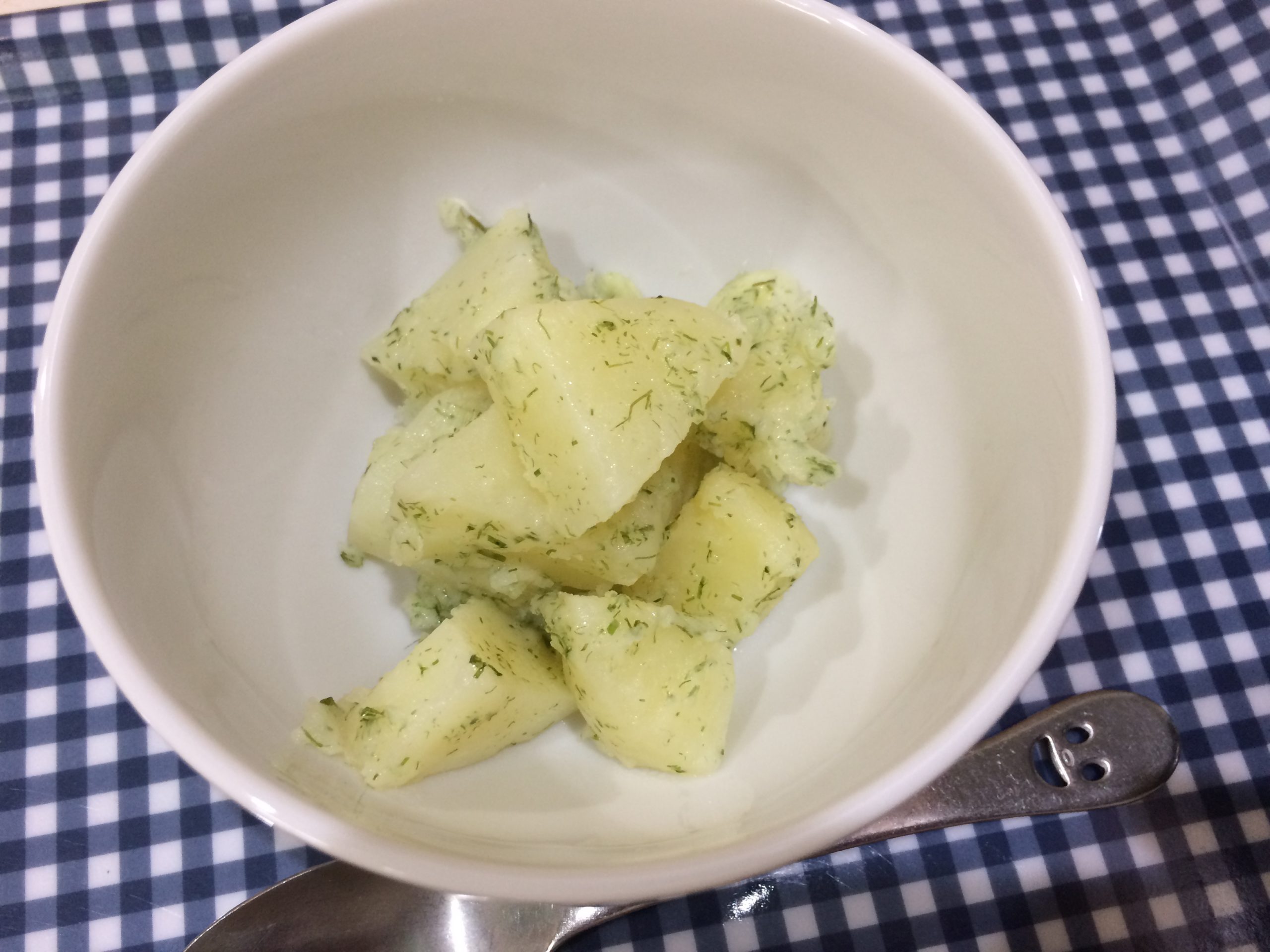 むぎごはん じゃがいもとなすのみそ汁 さわらのゆずみそかけ きゃべつの煮びたし...
