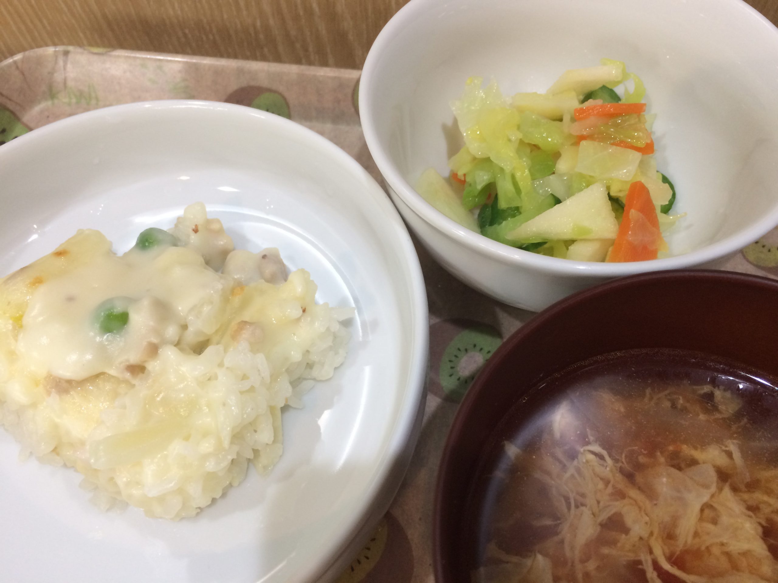 チキンドリア トマトと卵のスープ りんごサラダ ...