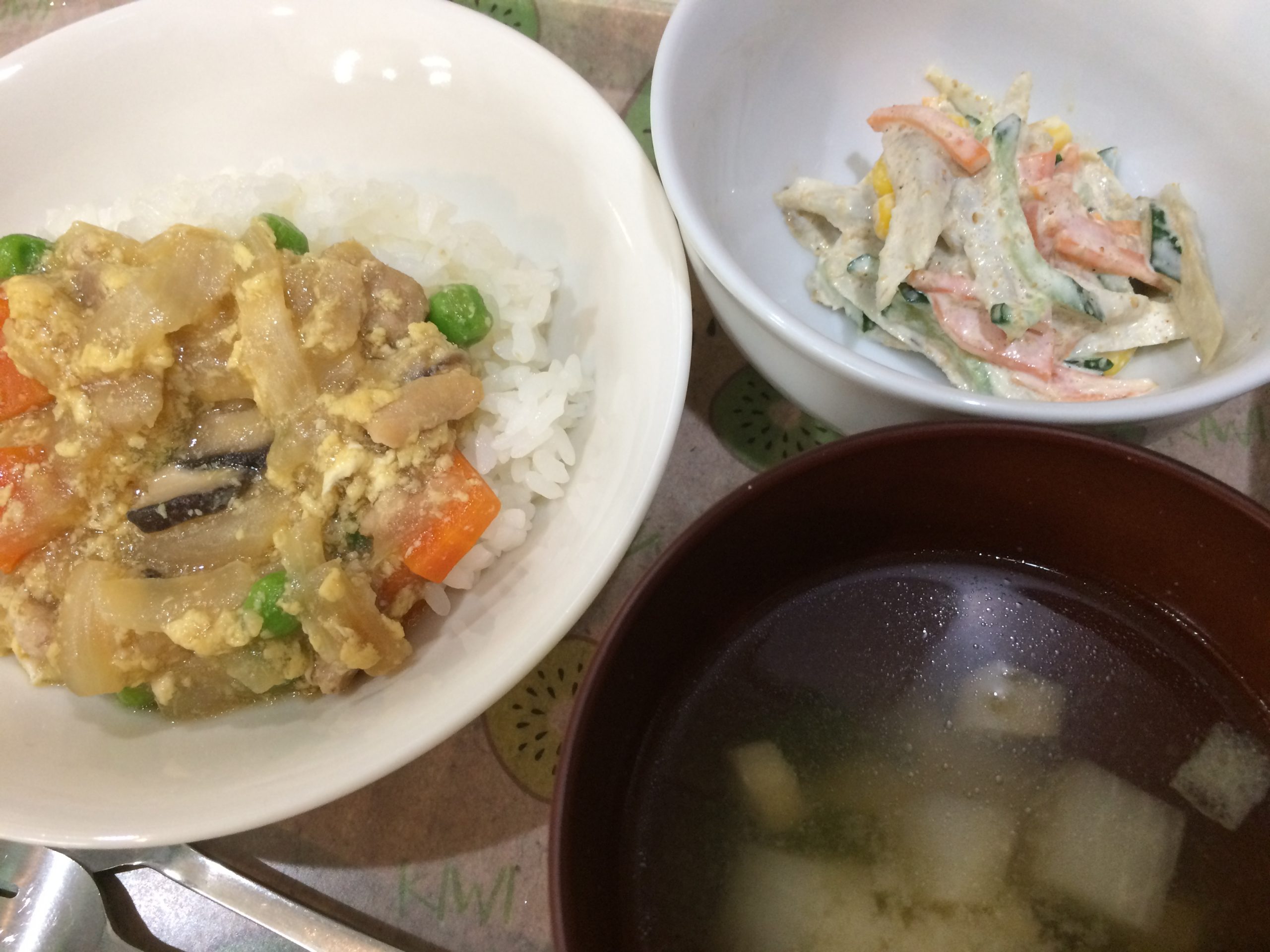 親子丼 ほうれん草のすまし汁 ブロッコリーのおかかあえ...