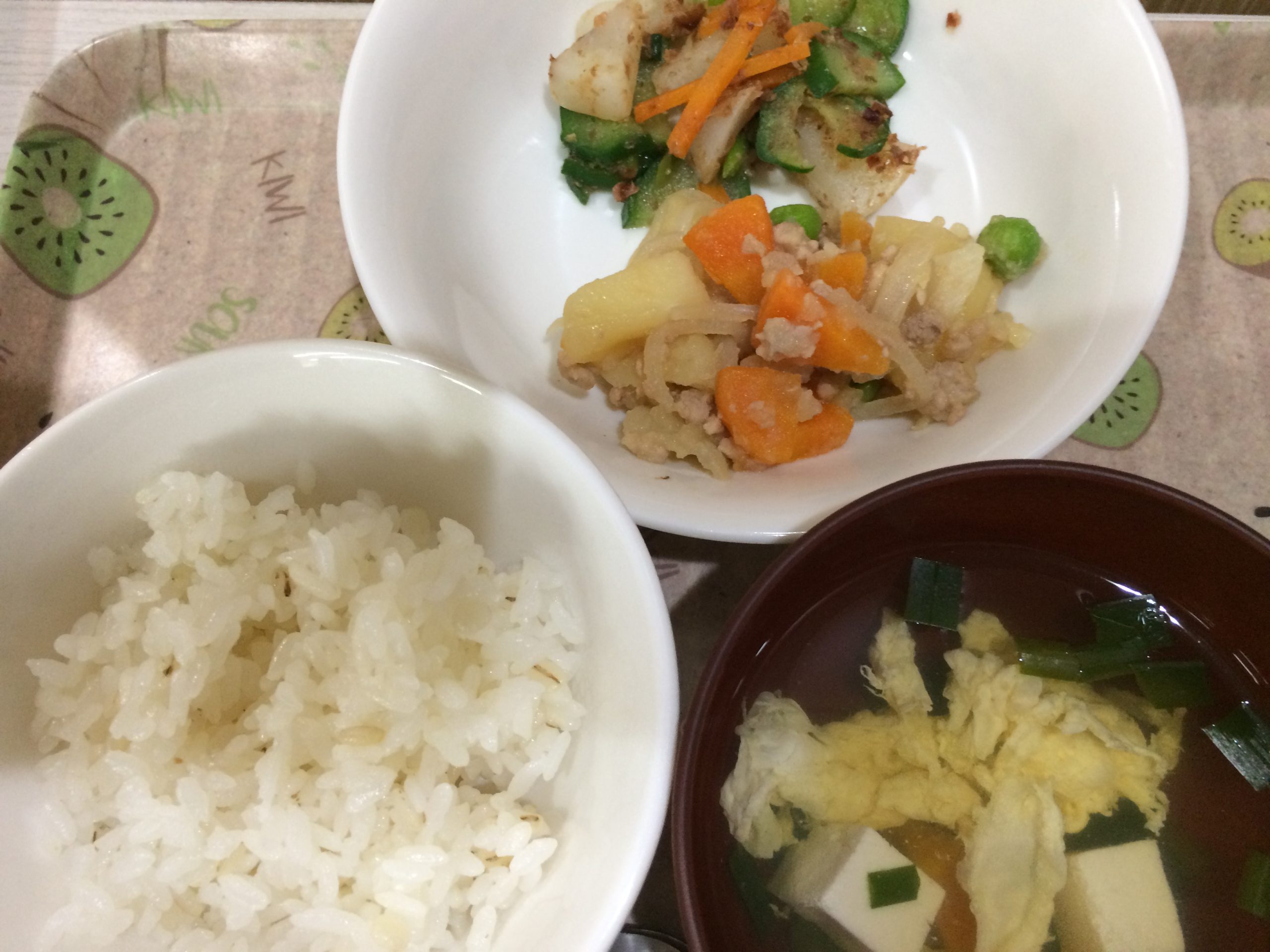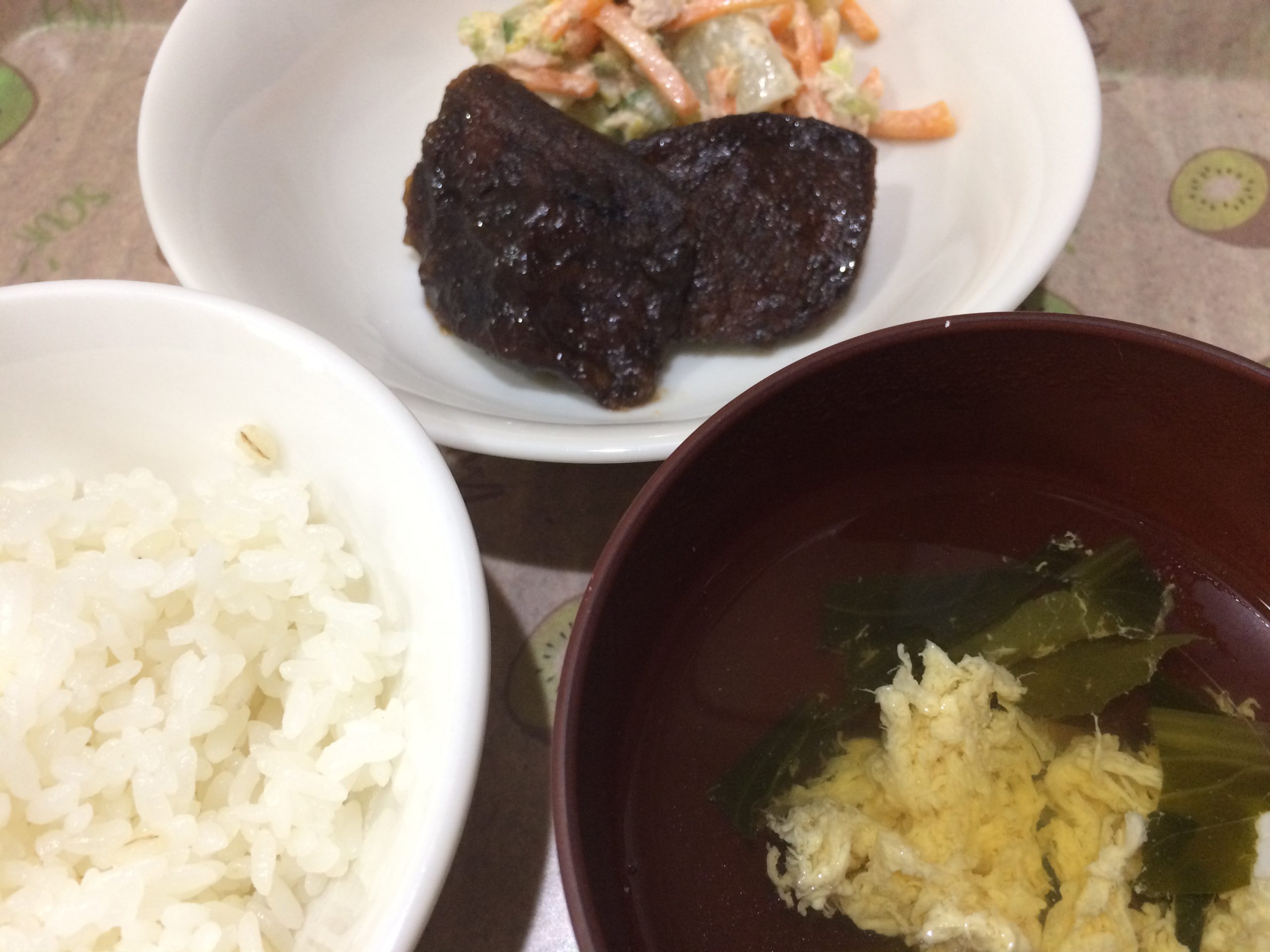 ひじきごはん わかめのすまし汁 鮭のホイル焼き キャベツのごま和え...